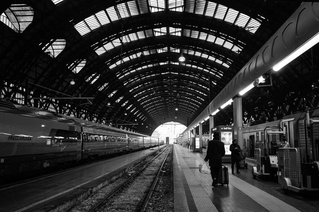 比如我们常见的火车站。由近及远,由大变小,这种渐变的构图往往会让我们的眼睛扫过延伸线看向远处。在月台上稍微等候,总有好片子。
