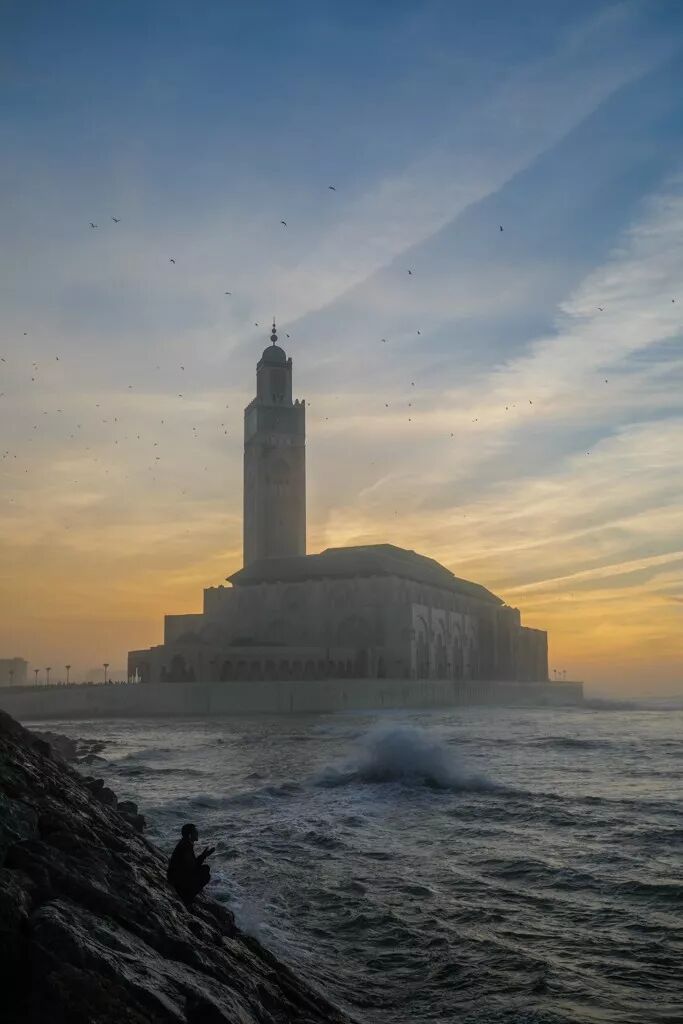 这张照片拍摄于卡萨布兰卡,海上清真寺绝对是一个出片的地方。在这里寻找一个好的拍摄场景并不算难。这个大堤上祷告的人就是一个点睛之笔。但是也别急着按下快门。我在拍摄时一方面等待这个人做出一个好的姿势——双手手掌朝上。另一方面,我一直在等着海水中有一个明显的激起的浪花。