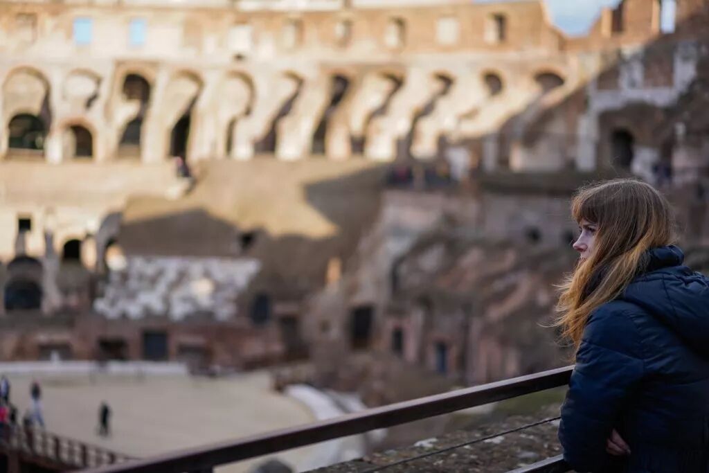 对于背景的交代,只要交代清楚就可以了。不需要都清晰。就像下面这张照片,我们能从虚化了的背景中看出来这是罗马斗兽场这就够了。而背景虚化,更容易让我们把视线停留在清晰的人物上面。