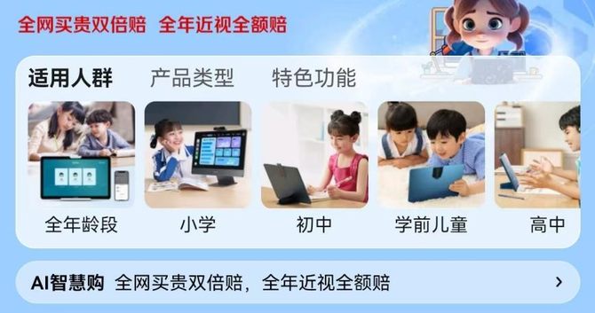 此外,在保障用户权益的基础上,为了进一步优化消费者的购买体验,京东还根据产品功能和孩子的学龄阶段进行了精准匹配。消费者只需打开京东APP搜索“学习机”,即可根据孩子的实际需求,基于适用人群、产品类型、特色功能等特点,选择最适合的产品,进一步优化家长群体入手学习机的购买体验,更加精准地匹配每位家长的购物需求。