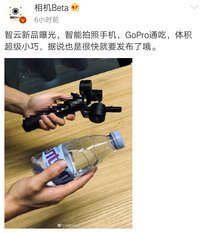 7月16日,@相机Beta疑似曝光了智云的新品稳定器。从透露的照片上可以看出该产品的体积非常小巧,和景田的小瓶矿泉水差不多高。爆料还透露此次新品将适用于智能拍照手机和GoPro。卡片机和APS-C画幅的微单也可能适用。