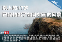 年仅17岁的美国摄影师Sam Elkins,他有着一双能在安静之中发现美的眼睛,他在壮美自然景色之中去寻找安静平和的画面,如同诗歌一般耐人品读。想想我们的17岁还在为高二升高三努力着。不过也不用过分羡慕他们的生活,只要你有一颗热爱摄影的心,无论什么时候启程都不晚。