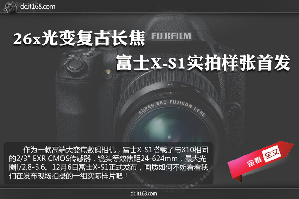 作为一款高端大变焦数码相机,富士X-S1搭载了与X10相同的2/3" EXR CMOS传感器,镜头等效焦距24-624mm,最大光圈f/2.8-5.6。12月6日富士X-S1正式发布,画质如何不妨看看我们在发布现场拍摄的一组实际样片吧!