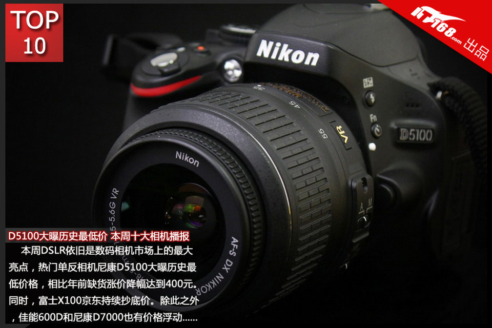 【IT168 资讯】以下就带来本周市场价格变动最大的10部相机!本周市场亮点:尼康D5100大曝历史最新价格 富士X100京东抄底价 索尼α77持续平稳