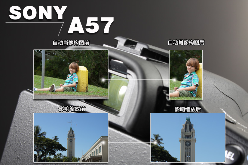A57的自动肖像构图功能是通过强大的人脸自动识别功能快速捕捉到想要拍摄的主体,按照黄金分割法则对拍摄作品进行画面优化。在保留原照的同时,输出一张主体突出、构图漂亮的人像照片,使入门级用户充分体验到人像拍摄的乐趣,解决构图不佳的问题。