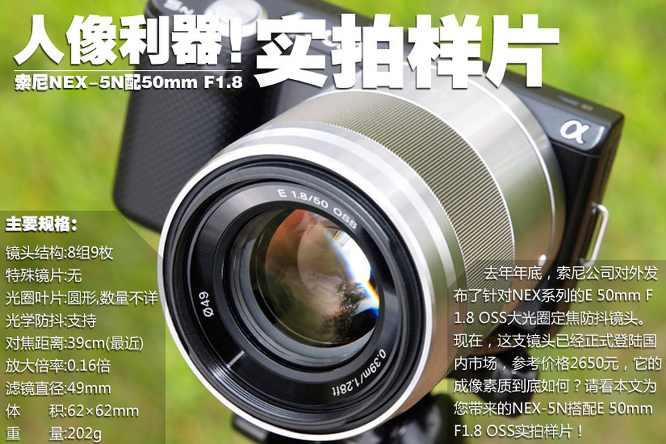 去年年底,索尼公司对外发布了针对NEX系列的E 50mm F1.8 OSS大光圈定焦防抖镜头。现在,这支镜头已经正式登陆国内市场,参考价格2650元,它的成像素质到底如何?请看本文为您带来的NEX-5N搭配E 50mm F1.8 OSS实拍样片!