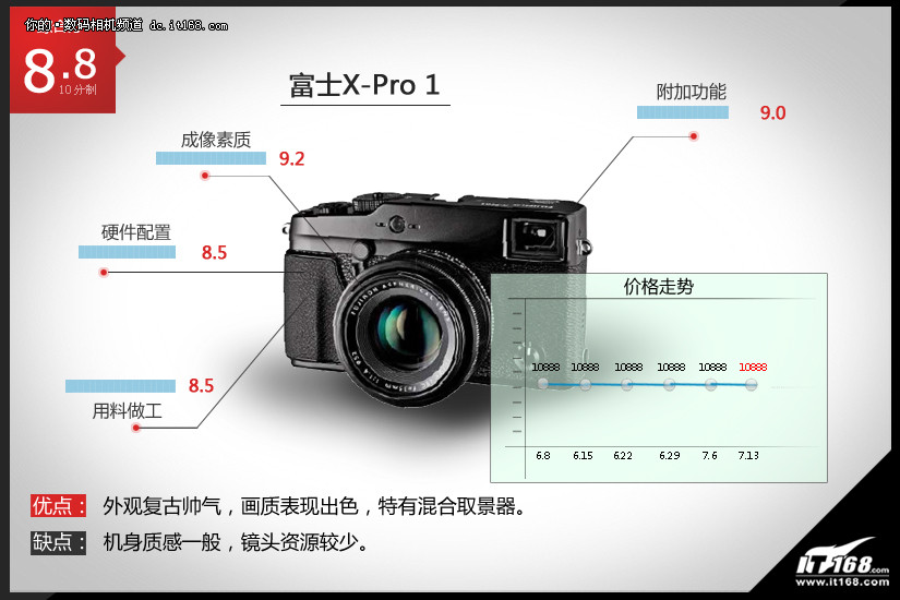 优点: 外观复古帅气,画质表现出色,特有混合取景器。