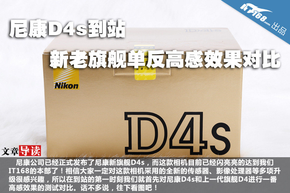 尼康公司已经正式发布了尼康新旗舰D4s,而这款相机目前已经闪亮亮的达到我们IT168的本部了!相信大家一定对这款相机采用的全新的传感器、影像处理器等多项升级很感兴趣,所以在到站的第一时刻我们就首先对尼康D4s和上一代旗舰D4进行一番高感效果的测试对比。话不多说,往下看图吧!