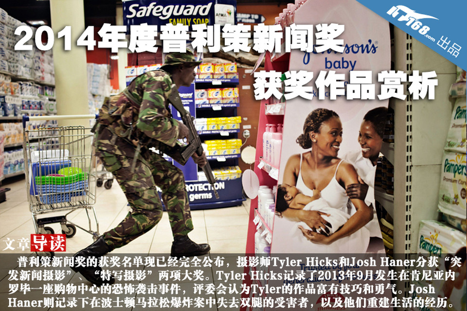 普利策新闻奖的获奖名单现已经完全公布,摄影师Tyler Hicks和Josh Haner分获“突发新闻摄影”、“特写摄影”两项大奖。Tyler Hicks记录了2013年9月发生在肯尼亚内罗毕一座购物中心的恐怖袭击事件,评委会认为Tyler的作品富有技巧和勇气。Josh Haner则记录下在波士顿马拉松爆炸案中失去双腿的受害者,以及他们重建生活的经历。
